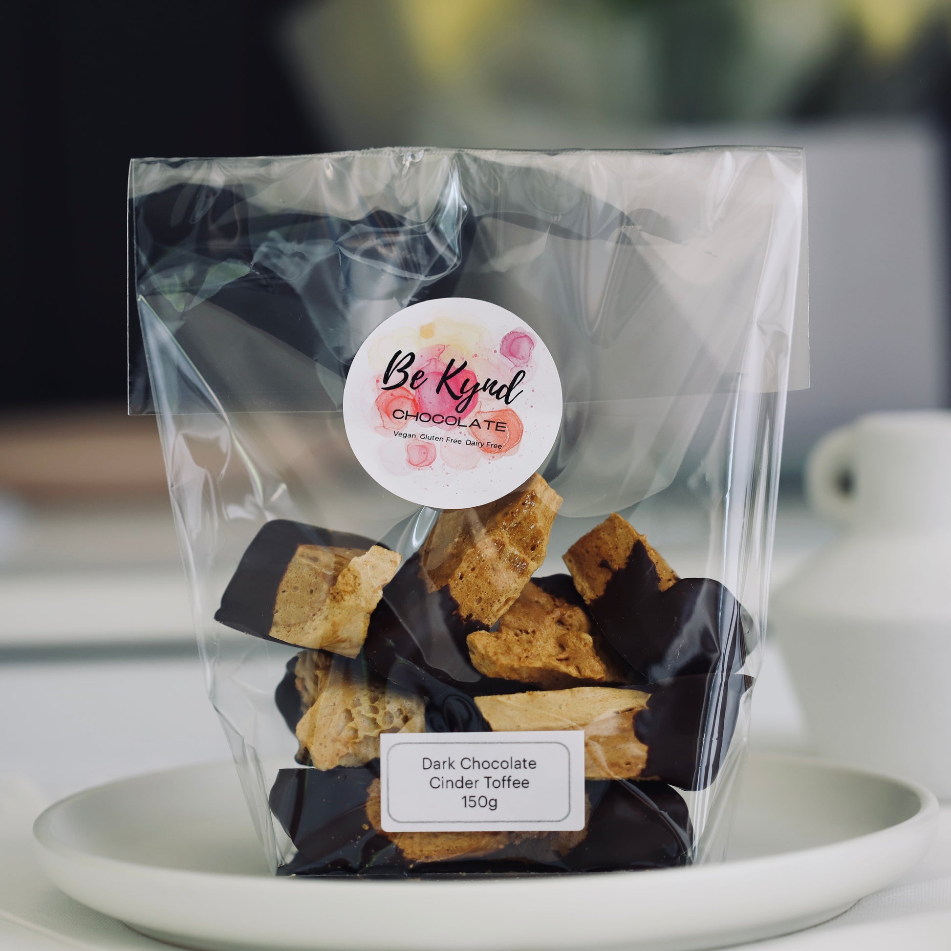 Whether you're looking for a guilt-free snack or a thoughtful gift, our Cinder Toffee dipped in Dark Couverture Chocolate is perfect for any occasion. So why not treat yourself or your loved ones today.