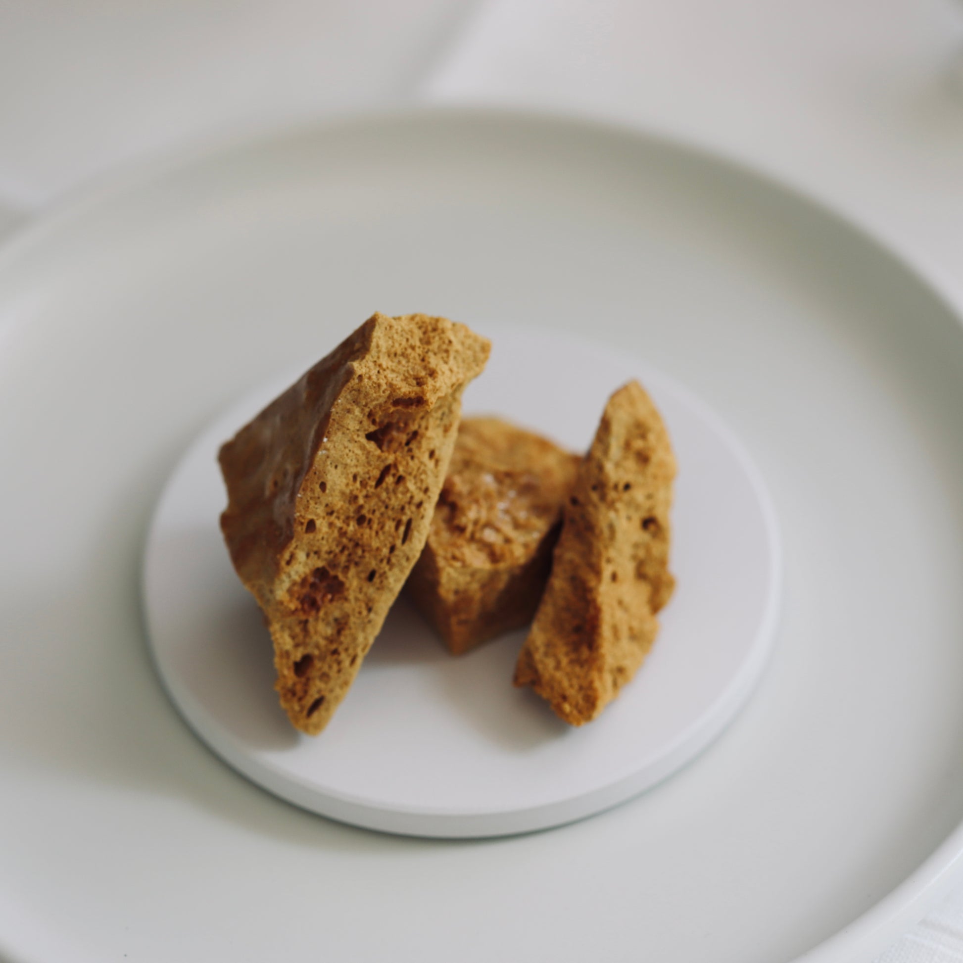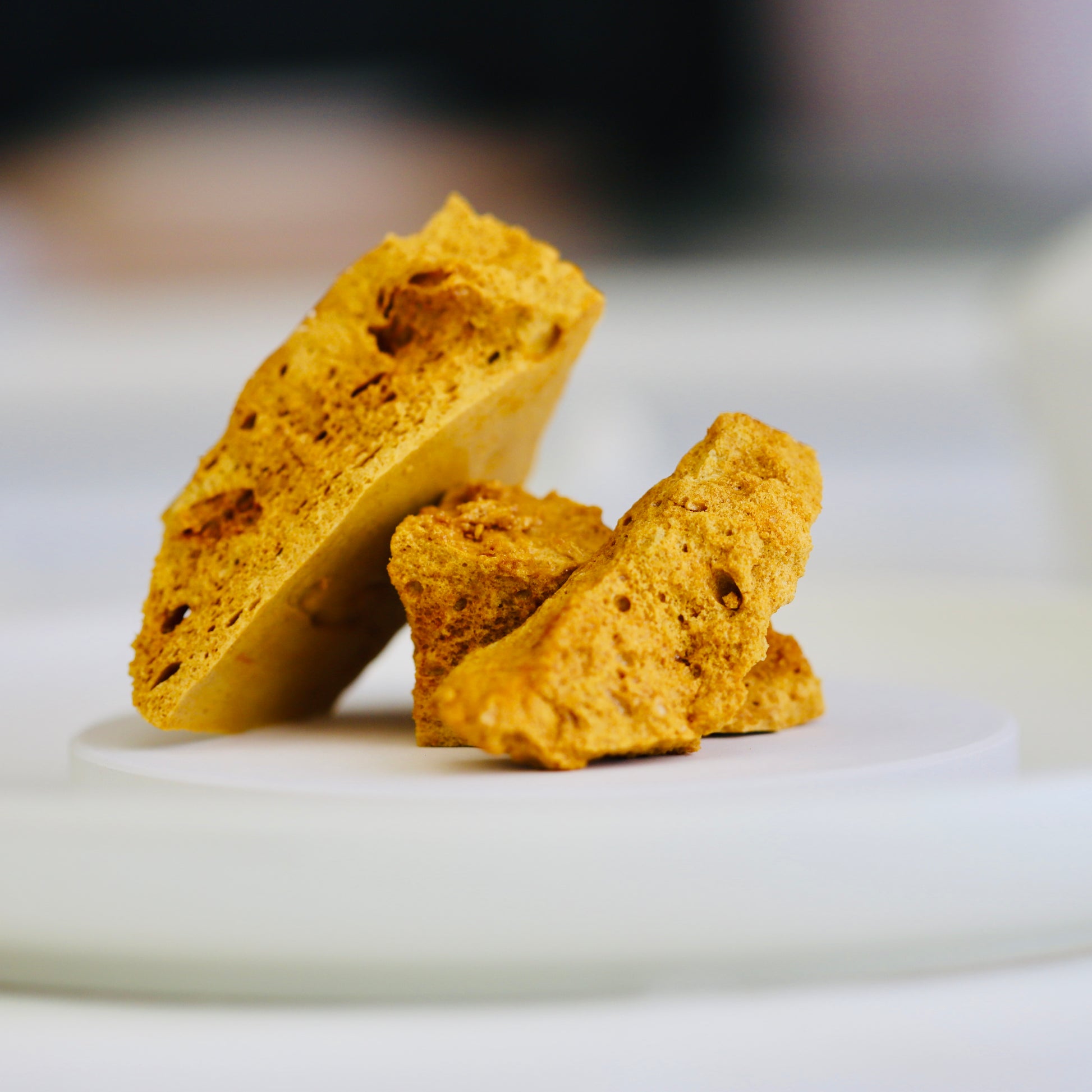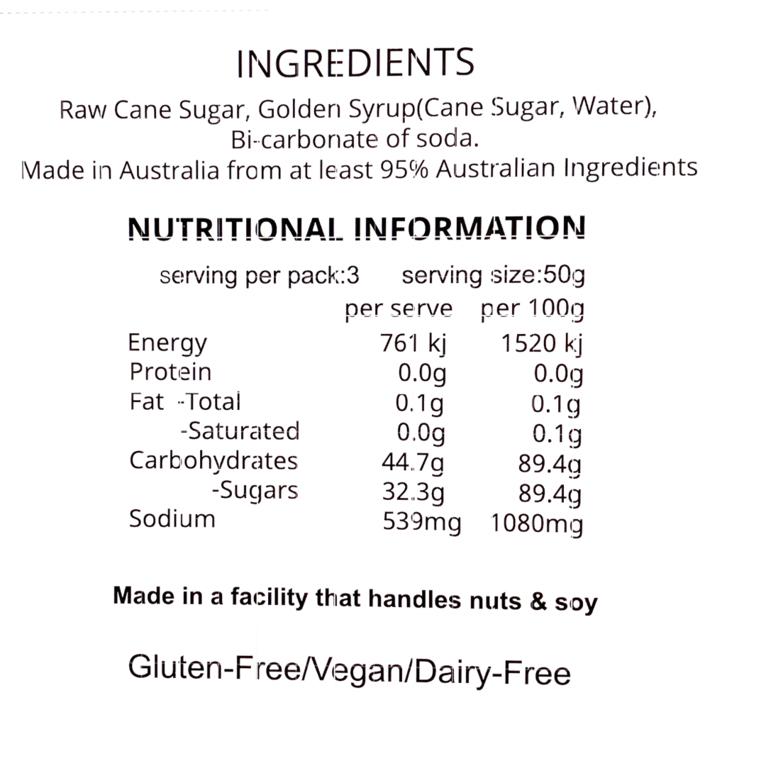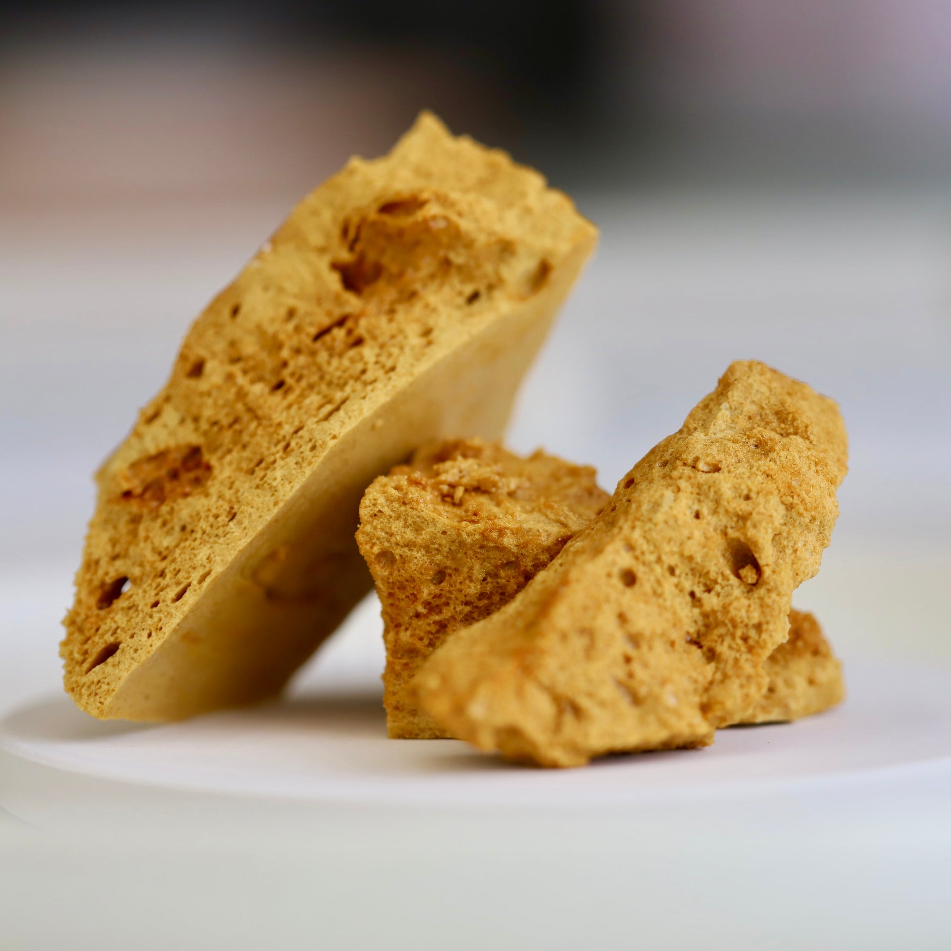 Looking for a vegan, gluten-free, and dairy-free sweet treat that's perfect for snacking or gifting? Try our plain cinder toffee! Made using a traditional recipe with a vegan twist, this cinder toffee is free from gluten and dairy, making it a guilt-free indulgence for those with dietary restrictions. Our toffee has a light and airy texture that's sure to please, and can be enjoyed as it is or sprinkled over your favourite dessert or biscuit recipe. Perfect for any occasion, our plain cinder toffee is a must-try for any lover of sweet treats. Order now and experience the delicious taste and texture of this classic confectionery, without the worry of allergens or animal products.